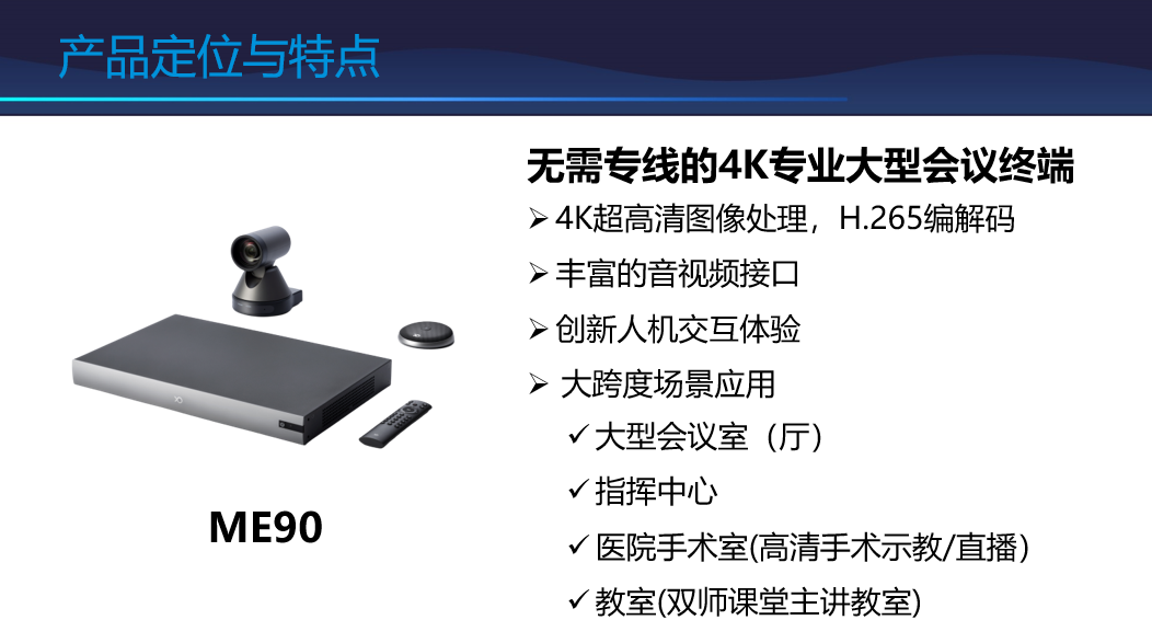 小鱼易连推出的一款面向企业中大型会议室的高清视频会议终端产品。它由主机、摄像头、全向麦克风、以及相关的线缆配件组成,配置丰富的音视频接口,可对接会议室内的各类音视频系统,满足大型会议室专业音视频设备的集成和部署。通过创新的小鱼触屏操控使终端操作和会议管理简单便捷。